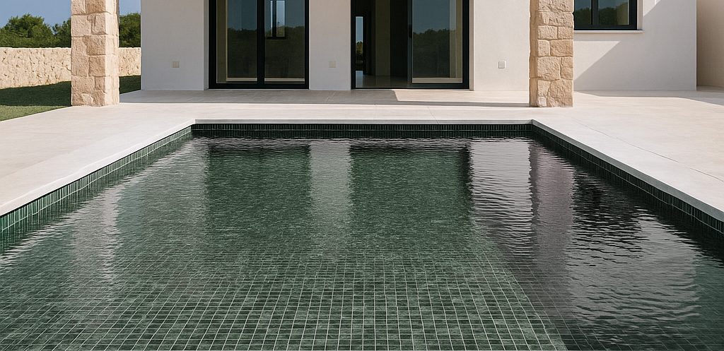 Glass mosaic in 5 x 5 cm tile format. It is presented in 31 x 31 cm sheet. Matt finish with a modern, trendy and unique design.